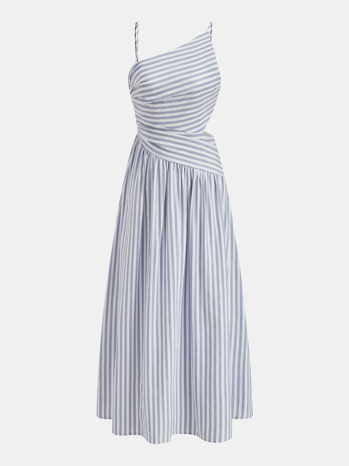 Striped Cut-Out Asymmetric Cami Maxi Dress