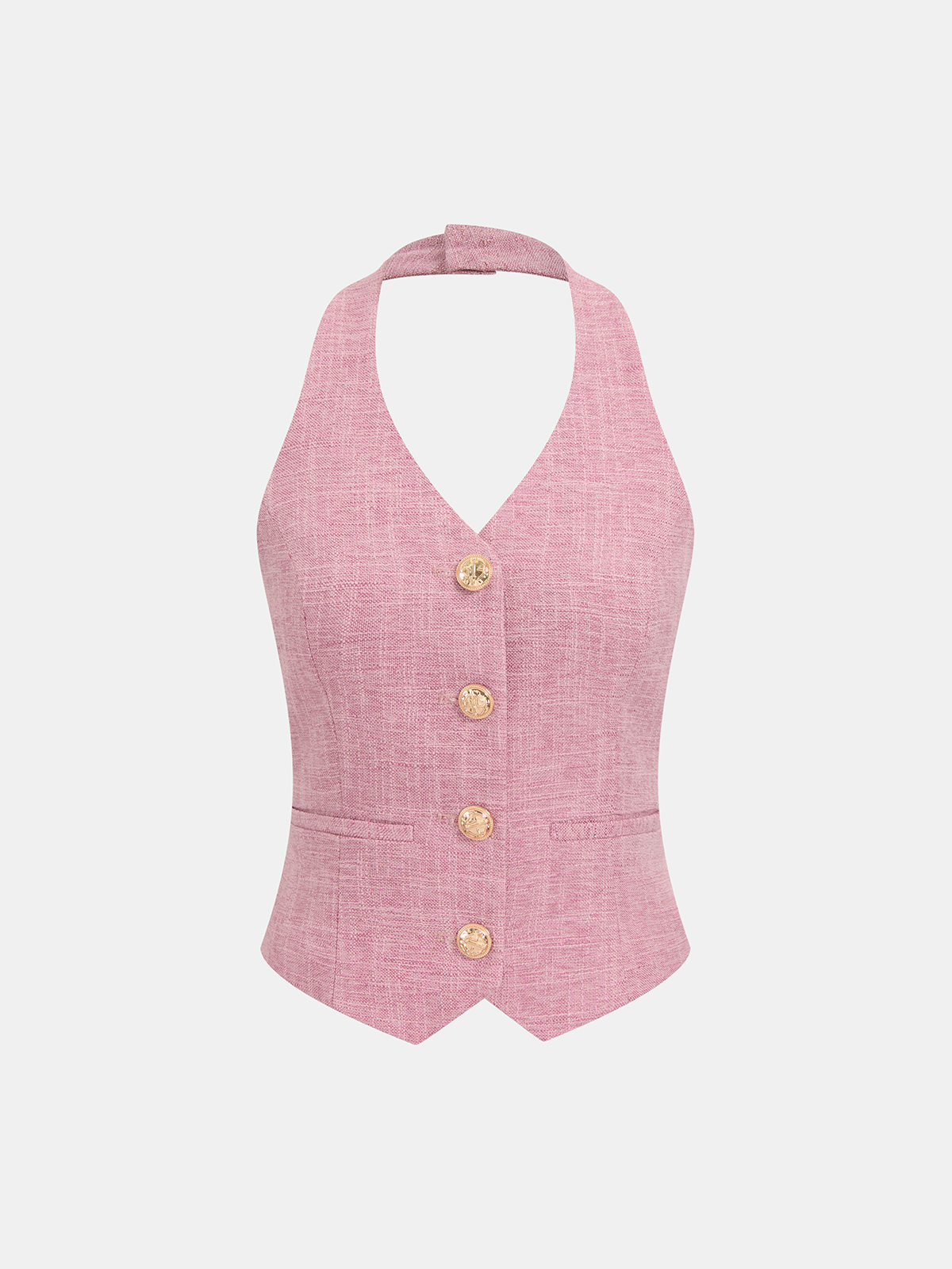 Asymmetrical Layer Button Wide Leg Dress Pants