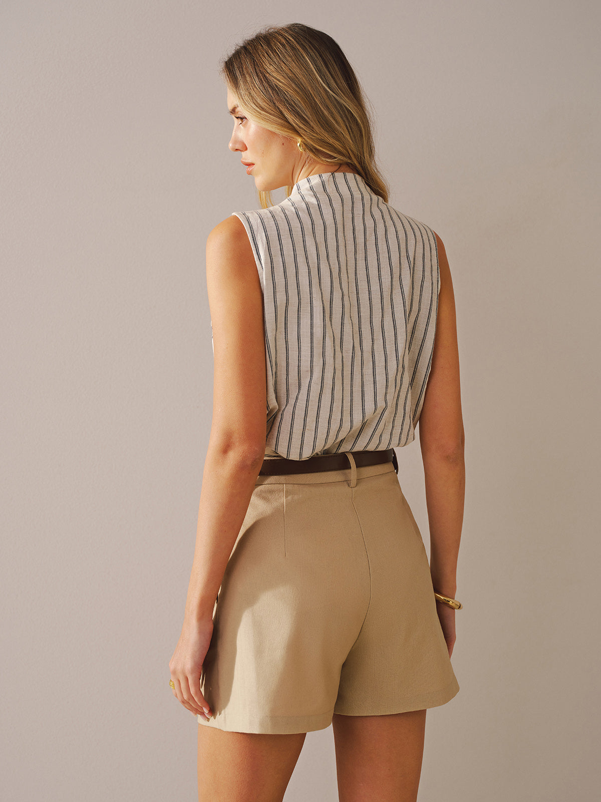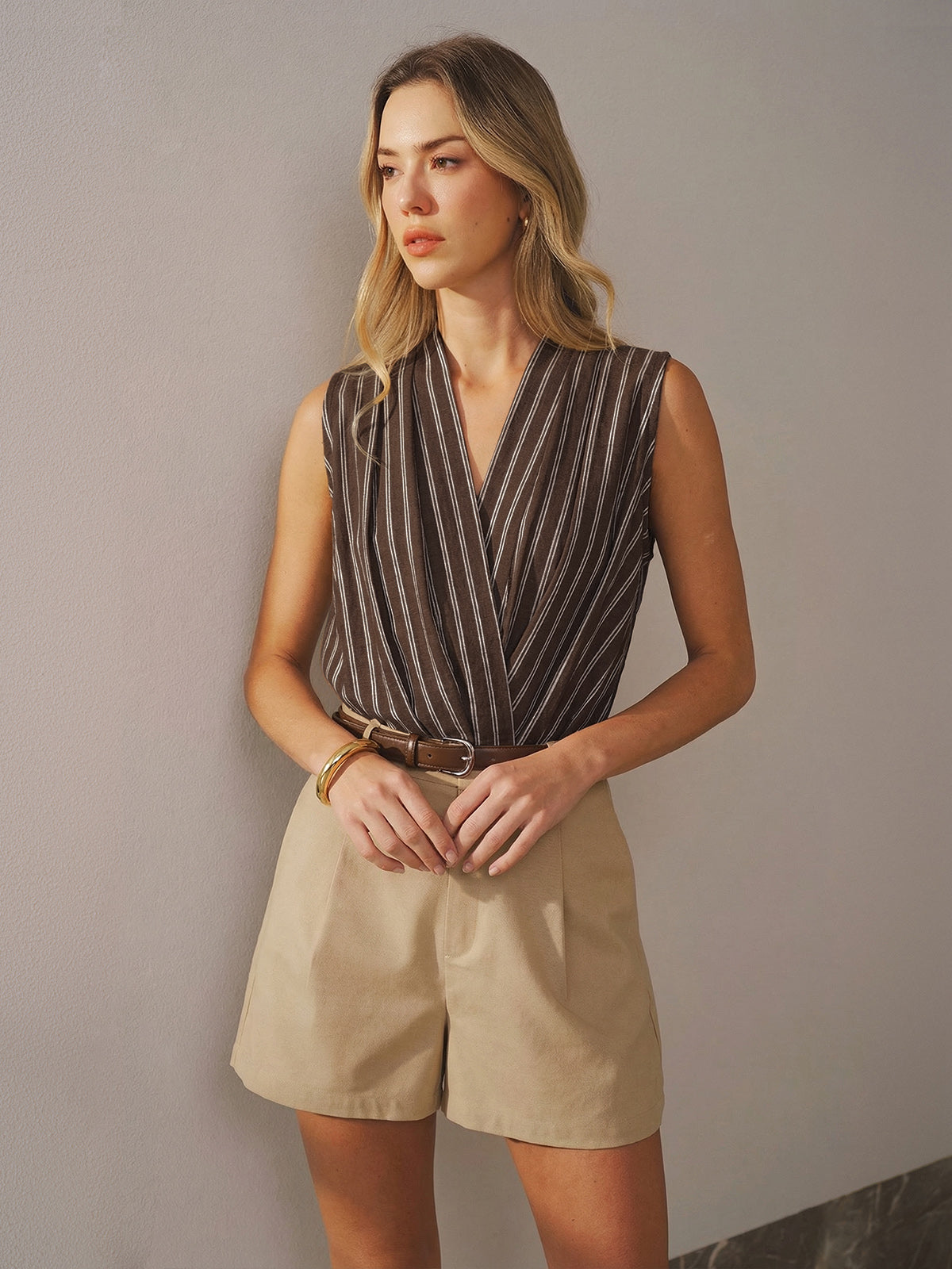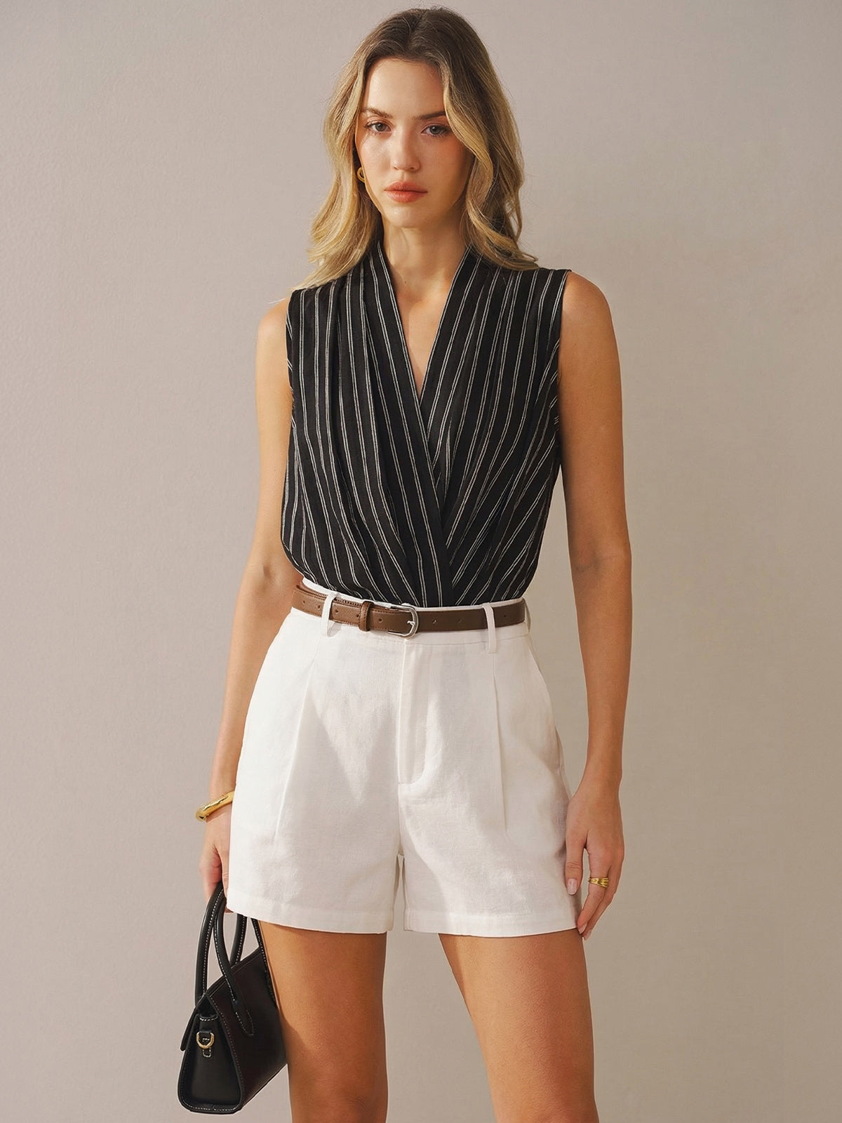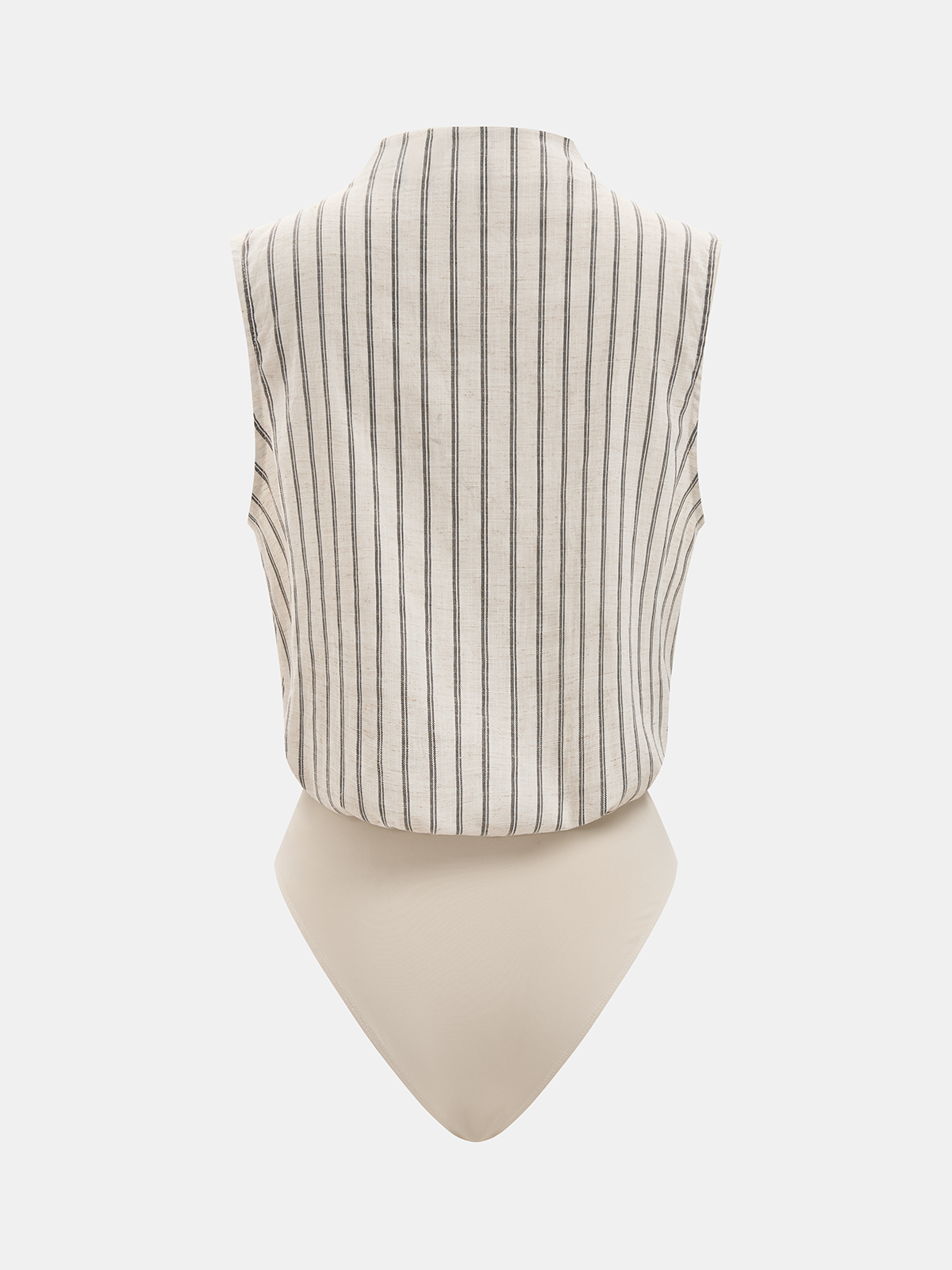 Cotton Linen Striped Sleeveless Wrap Bodysuit