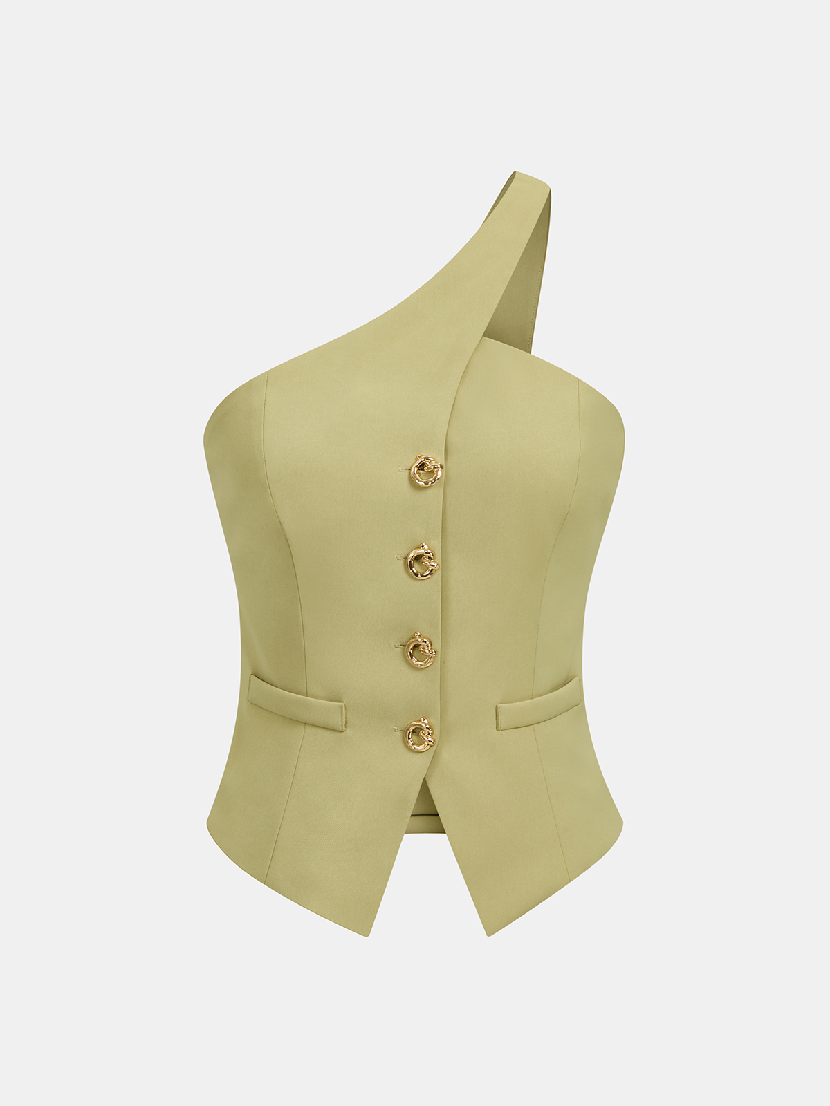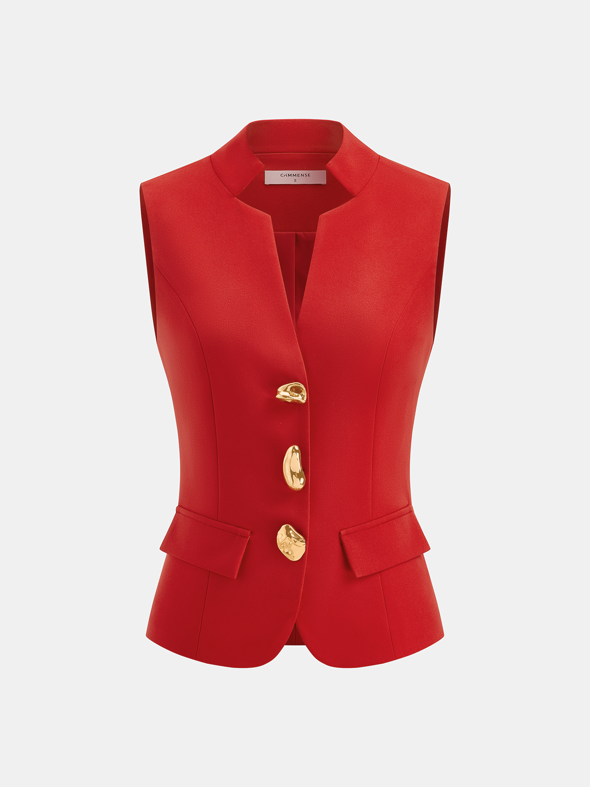 Cotton & Linen Round-Button Semi-Sheer Vest