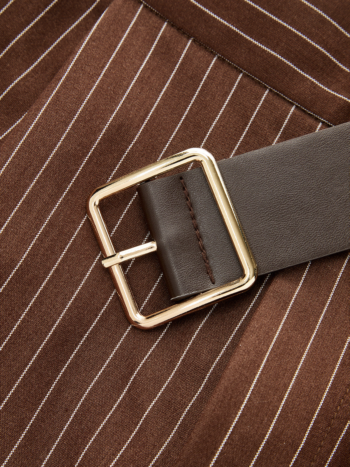 Pinstripe Sleeveless Top and Pants Set with Belt